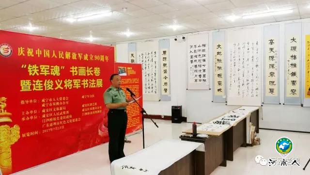 追寻红色记忆,传承红色血脉。7月23日上午10时,以“重走北伐路、弘扬铁军精神、共托强军梦”为主题的 “铁军魂”120米书画长卷暨连俊义将军书法作品展移师湖北咸宁汀泗桥畔举行。这是继7月15日在惠州举办后,巡展的第二场。千余名“铁军”老战士、抗战老兵、部队官兵和当地群众参观了连俊义将军书法作品展开幕式。