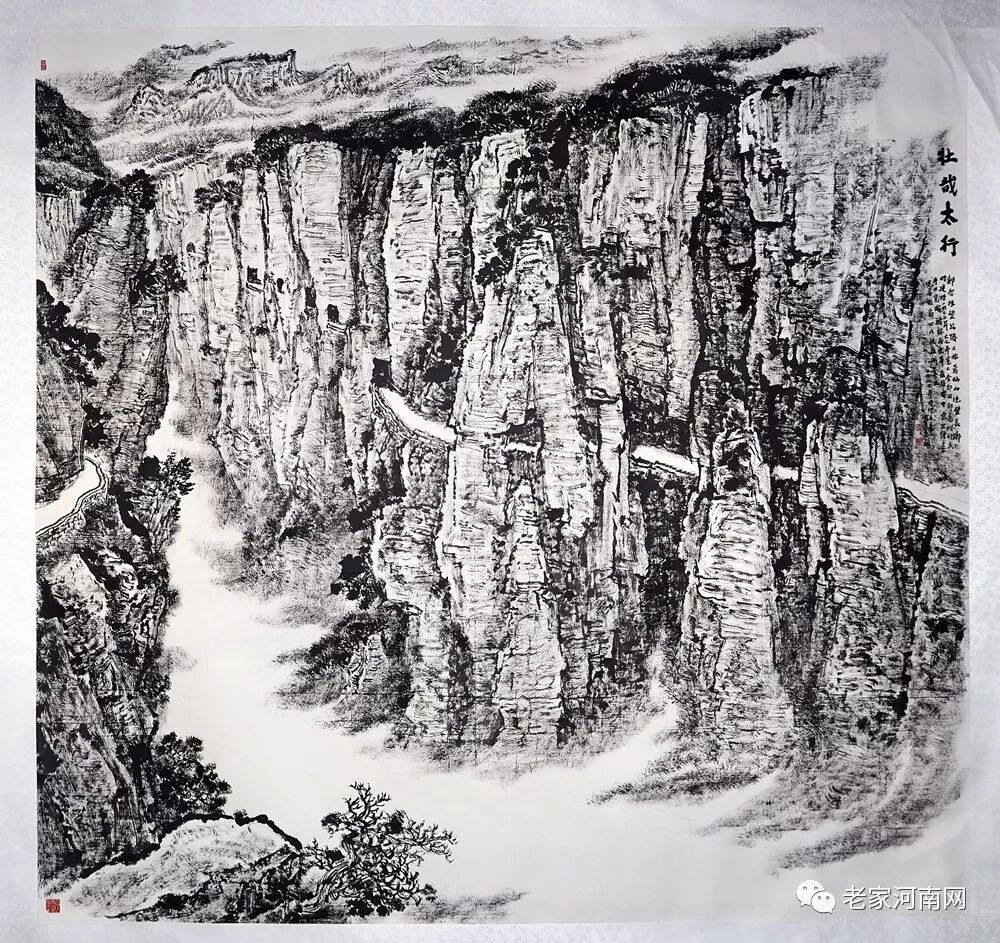 巍巍太行,牧野绽放。6月9日上午,由河南省教育厅主办,河南省学校艺术教育协会、河南省教育界书画家协会、河南省美协教育艺委会协办,河南师范大学、河南太行画派研究院承办的“艺术名家进校园——窦宪敏太行山水画高校巡展”在河南师范大学举行启动仪式和首展。