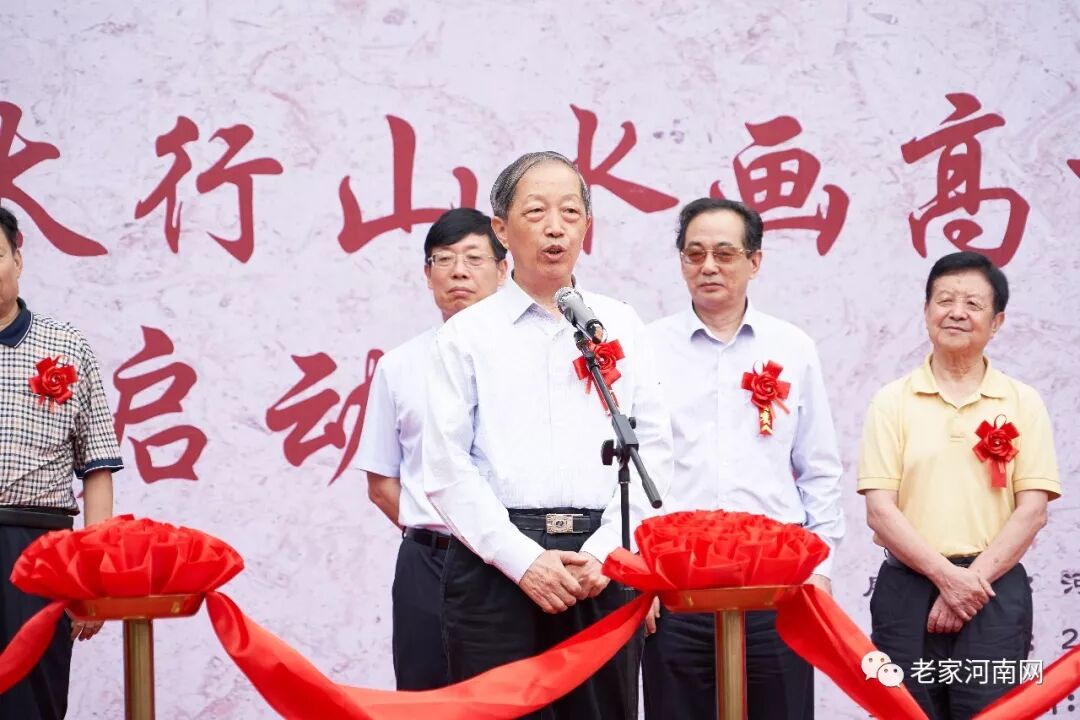启动仪式由河南师范大学美术学院院长张建伟主持。首先,河南师范大学副校长刘玉芳代表河南师范大学对莅临此次活动的来宾表示热烈欢迎,高度赞扬了窦宪敏先生画作中的爱国情怀,简要介绍了学校近年在学科、科研方面取得的重要成就,充分肯定了画展在提高学生专业素养和爱国主义教育方面的重要作用;其次,河南省教育厅副巡视员李金川着重介绍了窦宪敏先生的创作经历和画作特点,希望同学们在参观中学习窦先生的坚持不懈的绘画精神,为中国崛起贡献力量;新乡市人民政府副市长李瑞霞肯定了窦先生对太行山的精神内涵的刻画。窦宪敏先生致答谢词,并向美术学院捐赠了其创作的山水作品。最后,河南省十二届人大常委会党组副书记、副主任蒋笃运宣布巡展开幕,并与各位领导一起为开幕式剪彩。